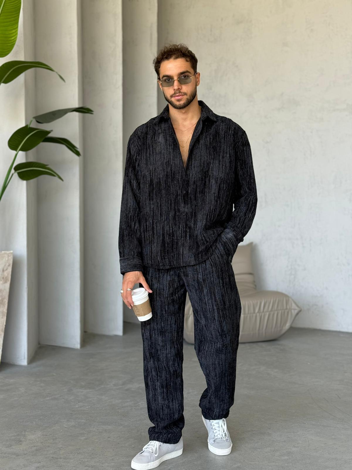 Yıkamalı Kadife Takım Siyah